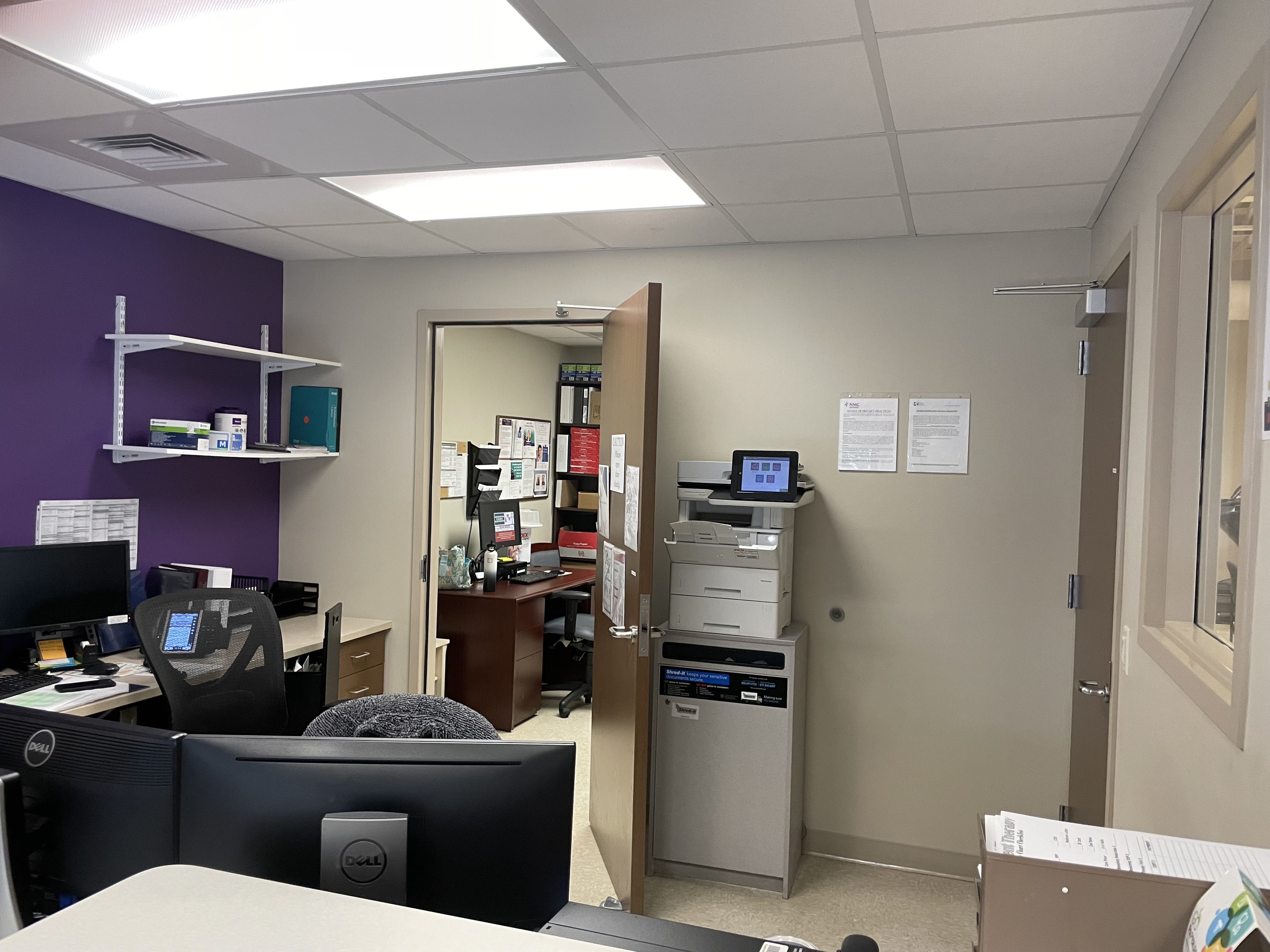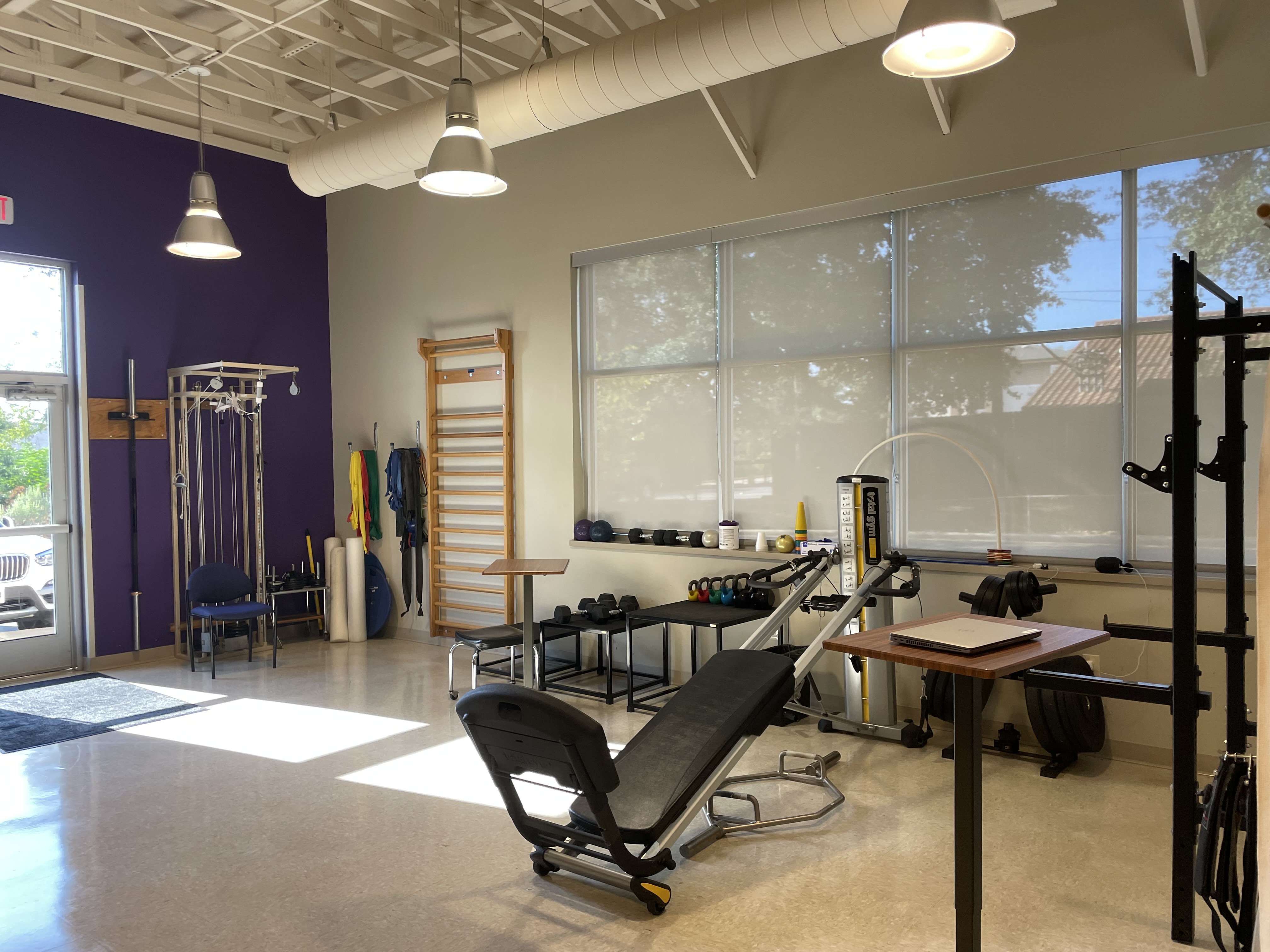 Located in Suite B of this medical block, the property includes a waiting area, open gym, office space, staff lounge, private treatment rooms and a restroom.