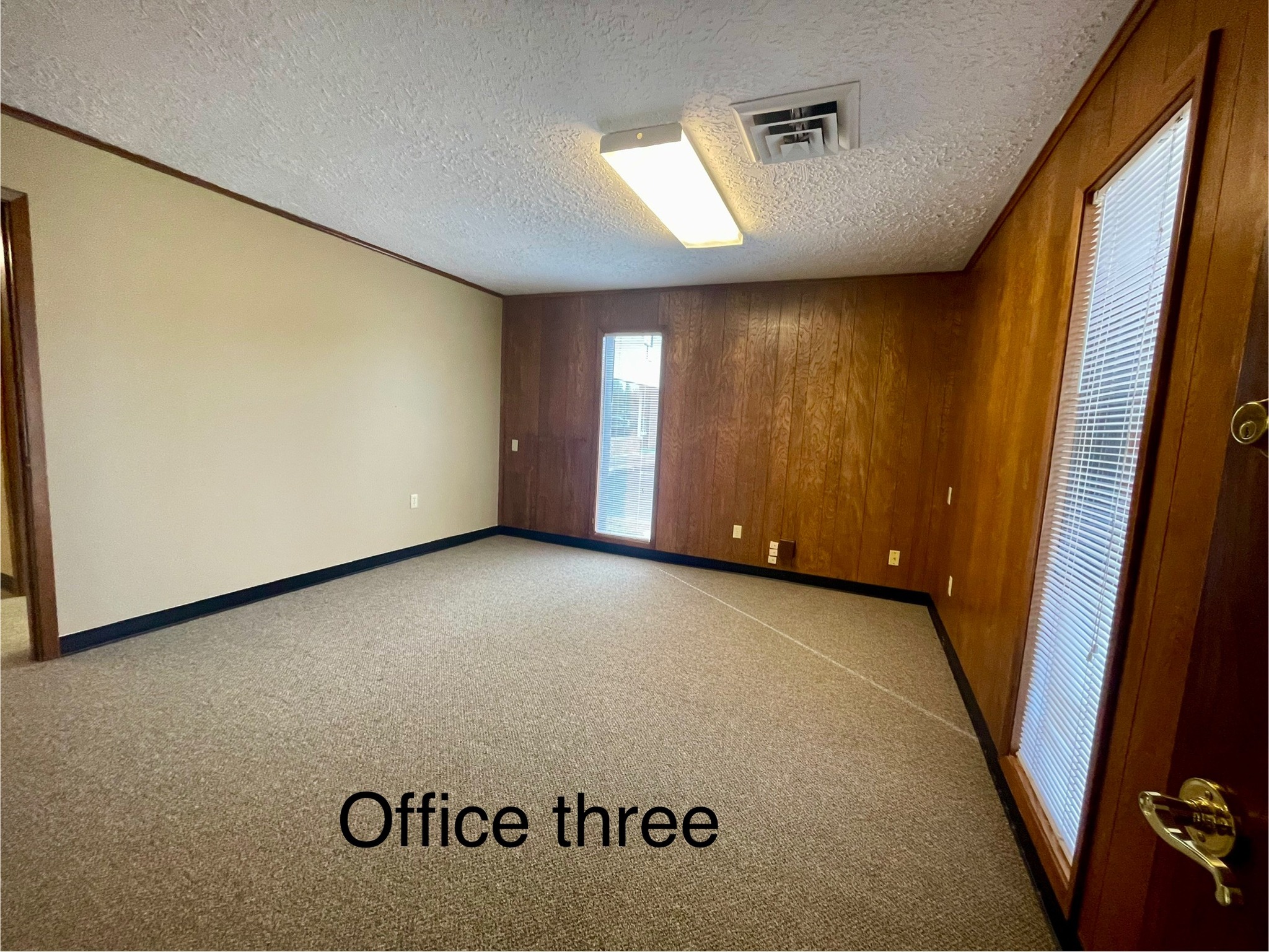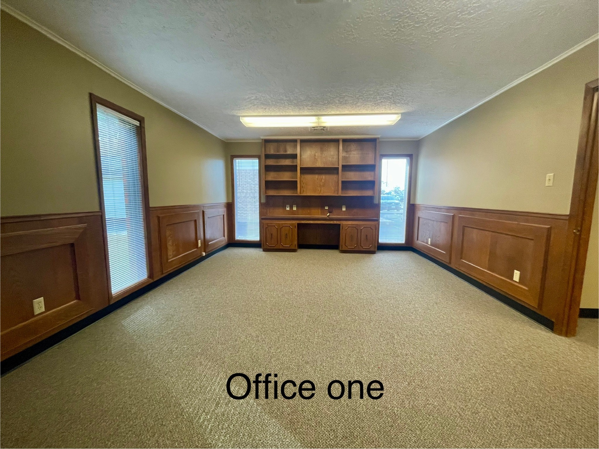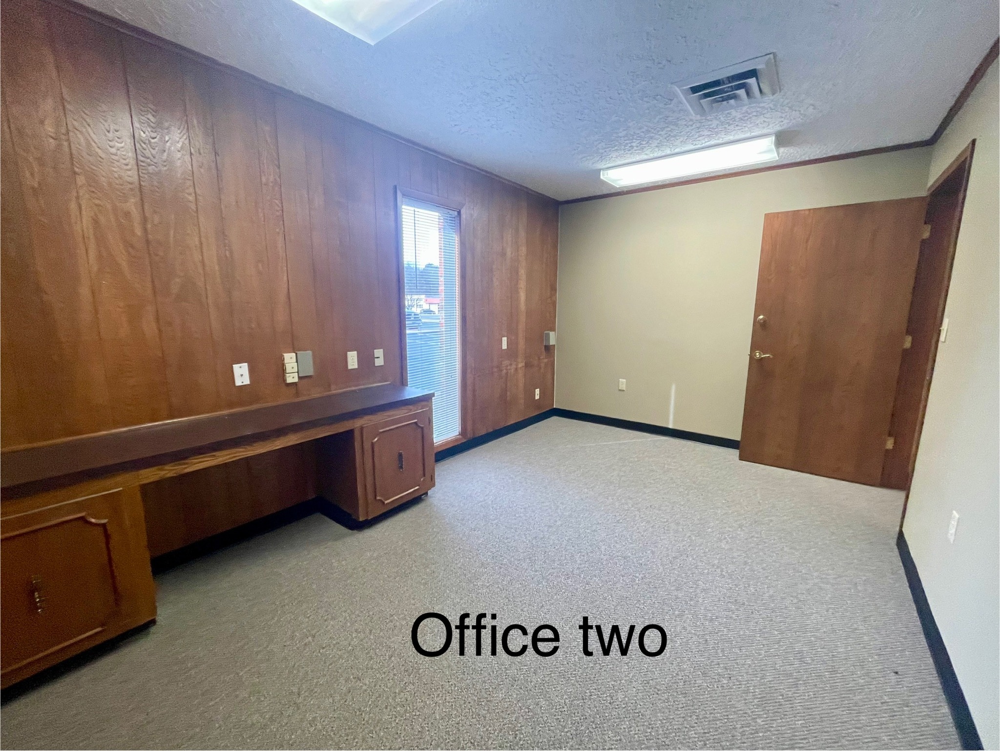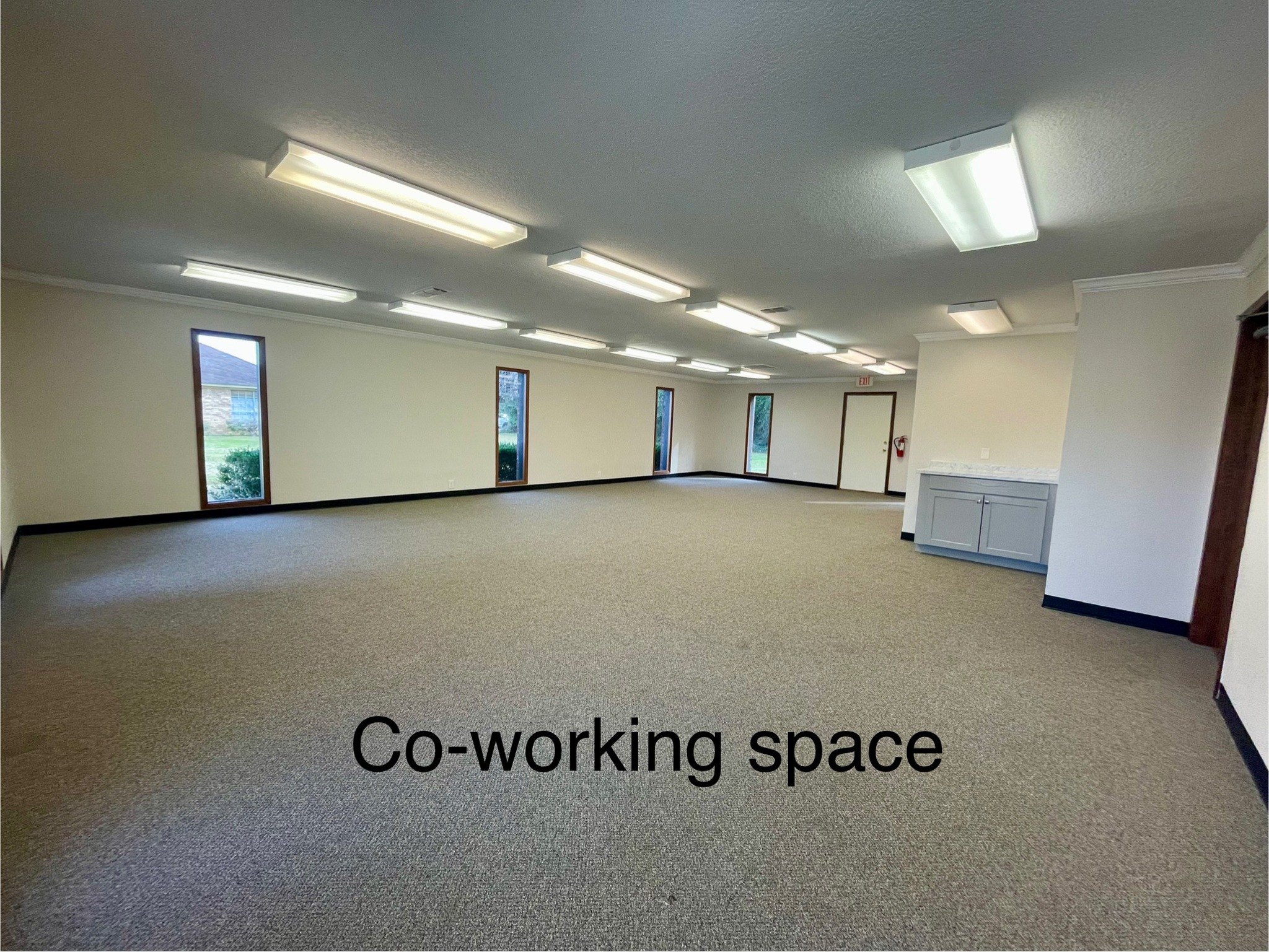 This 2,084 sq. ft. building features a large group workspace, three private offices and two restrooms. There are 14 parking spots available, and the property is near Stephen F. Austin State University and medical facilities. The monthly rate is $2,800 per month.